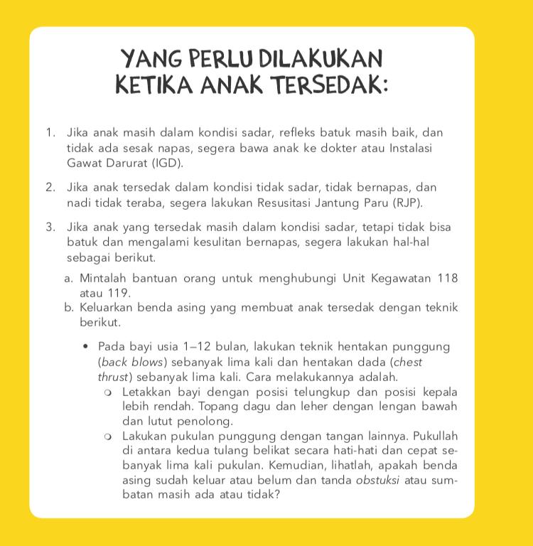 apa yang perlu dilakukan ketika tersedak apa yang perlu dilakukan ketika tersedak 2 apa yang perlu dilakukan ketika tersedak 2 segera hubung petugas gawat darurat jika anak segera hubung petugas gawat darurat jika anak prosedur menghadapi kegawatan pada anak di rumah prosedur menghadapi kegawatan pada anak di rumah